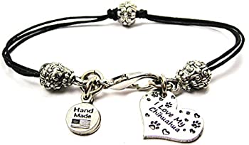 【中古】【輸入品・未使用】ChubbyChicoCharms I Love My Chihuahua、ピュータービーズブラックワックスコットンコードブレスレット、2.5?"