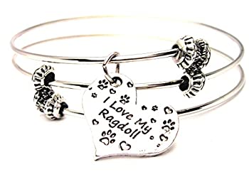 【中古】【輸入品・未使用】ChubbyChicoCharms I Love My Ragdoll Expandable Wire Tripleスタイルバングルブレスレット、2.5?"