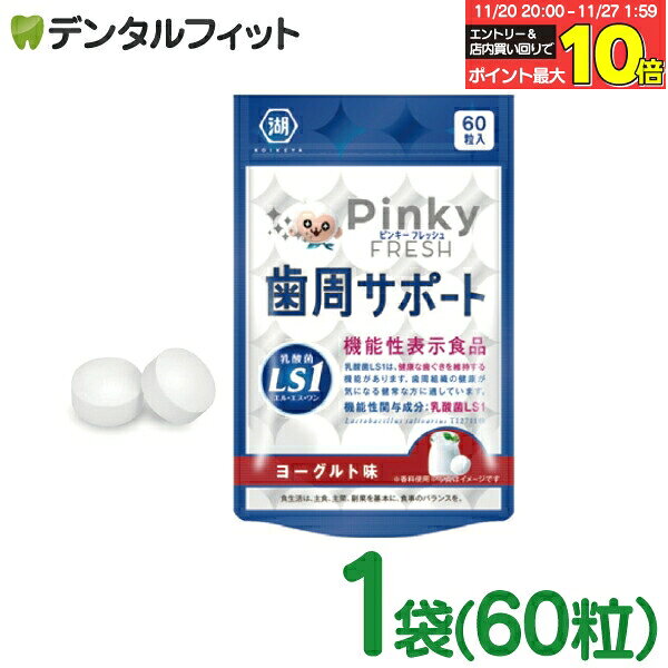 【★エントリーと店内3点購入でP10倍(11/20 20:00-11/27 1:59迄)】Pinky FRESH 歯周サポート ヨーグルト味 1袋(60粒) 歯科専売品 乳酸菌LS1 ( Lactobacillus salivarius TI2711株 ) 口臭 歯茎 口内環境 歯の健康 歯周病対策に【メール便選択で送料無料】 (メール便4点まで)