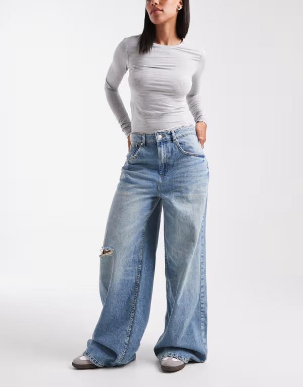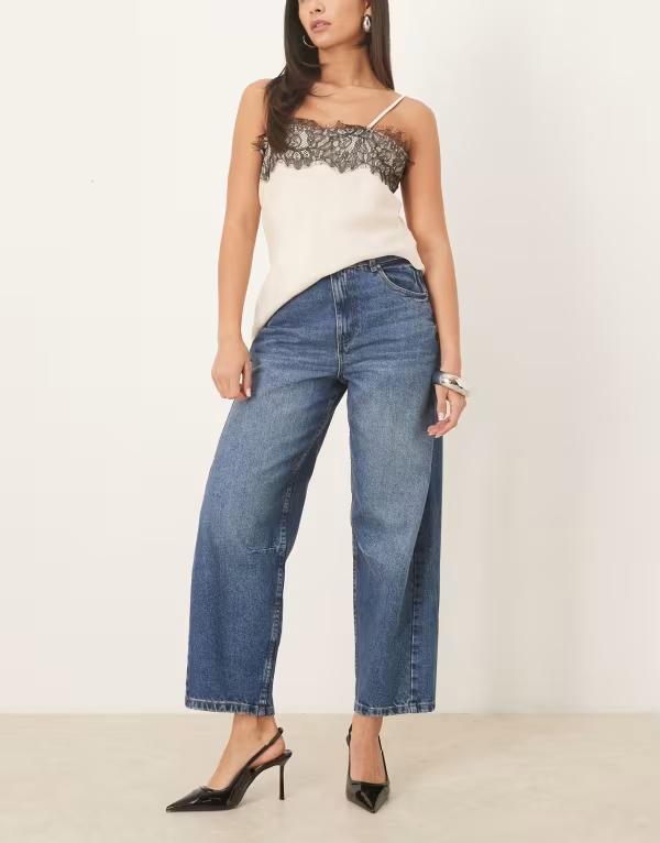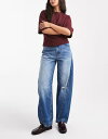 エイソス レディース ボトムス デニムパンツ ジーンズ ASOS DESIGN barrel leg jeans with paneling and cinching in midwash with rips AUTHENTIC MID WASH