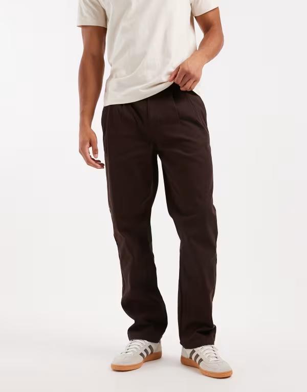 エイソス メンズ ボトムス カジュアルパンツ ストレート パンツ ASOS DESIGN straight leg pants with pleats and side cinching BROWN ブラウン