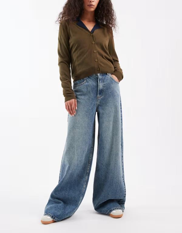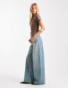 エイソス レディース ボトムス デニムパンツ ワイドレッグ ヴィンテージ ジーンズ ASOS DESIGN high waisted wide leg jeans with cinch in pale vintage wash Pale Vintage