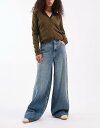 エイソス レディース ボトムス デニムパンツ ワイドレッグ ヴィンテージ ハイウエスト ジーンズ ASOS DESIGN high waist wide leg jeans with cinch in vintage wash VINTAGE