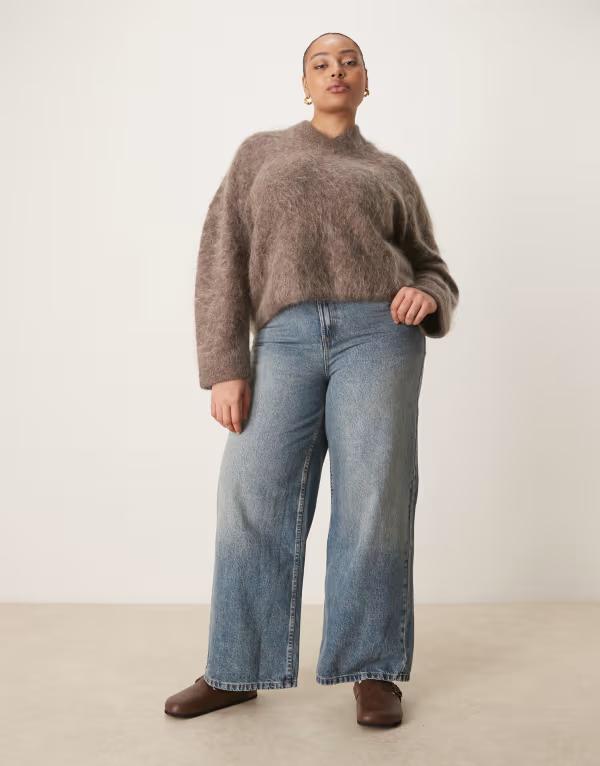 エイソス レディース ボトムス デニムパンツ ワイドレッグ ヴィンテージ ジーンズ ASOS Curve ASOS DESIGN Curve high waisted wide leg jeans with cinch in vintage wash VINTAGE