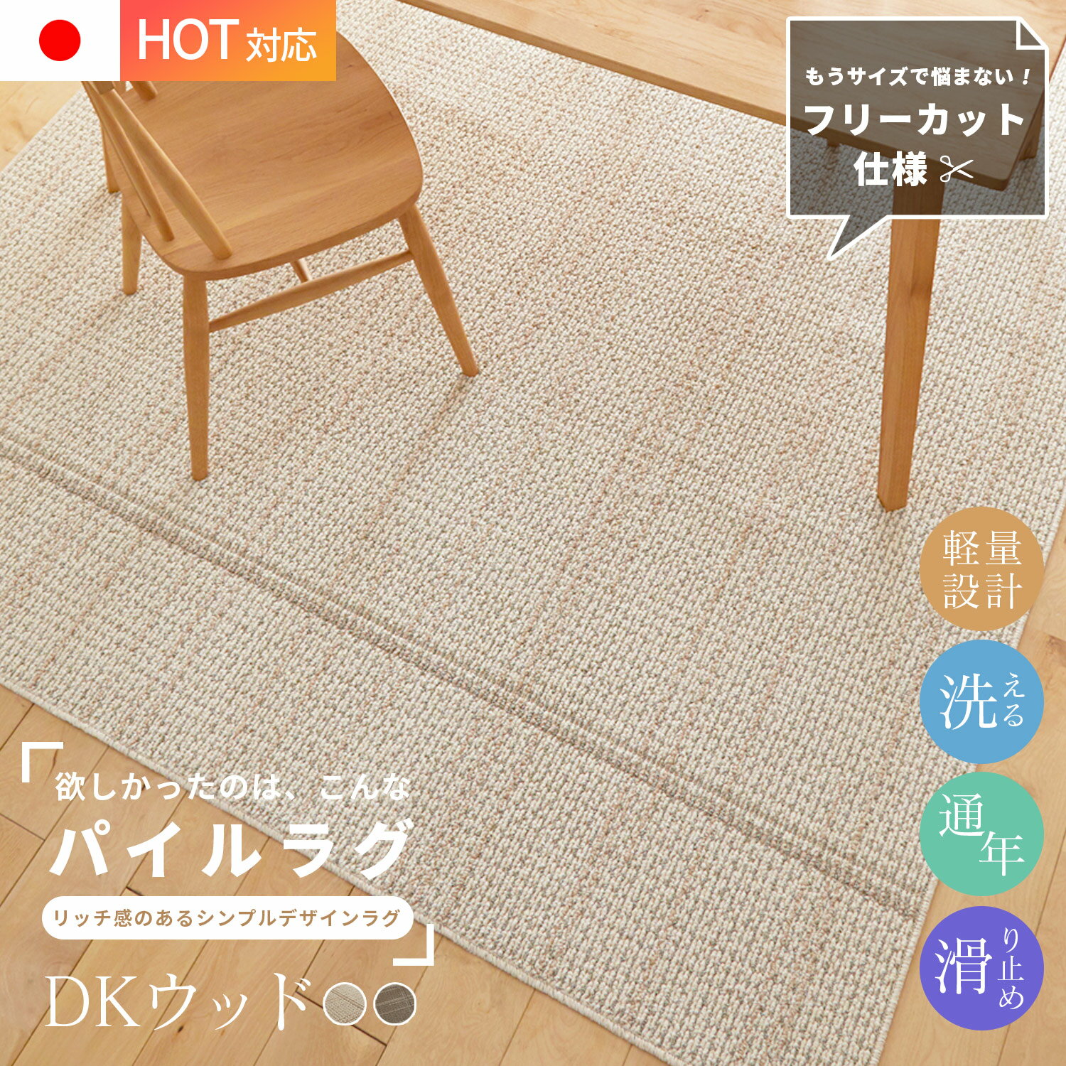 万能 洗えるラグ 選べる2サイズ フリーカット DKウッド通年 オールシーズン 防ダニ 日本製 床暖対応 ホットカーペット対応 洗える ウォッシャブル マット 絨毯 ラグマット リビング ひとり暮らし スミノエ スミノエラグ 送料無料 [ラグCP] [CLT]