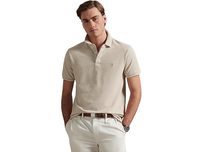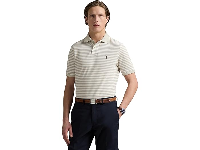 (取寄) ラルフローレン メンズ クラシック フィット ストライプド メッシュ ポロ シャツ Polo Ralph Lauren men Classic Fit Striped Mesh Polo Shirt Classic Khaki/White