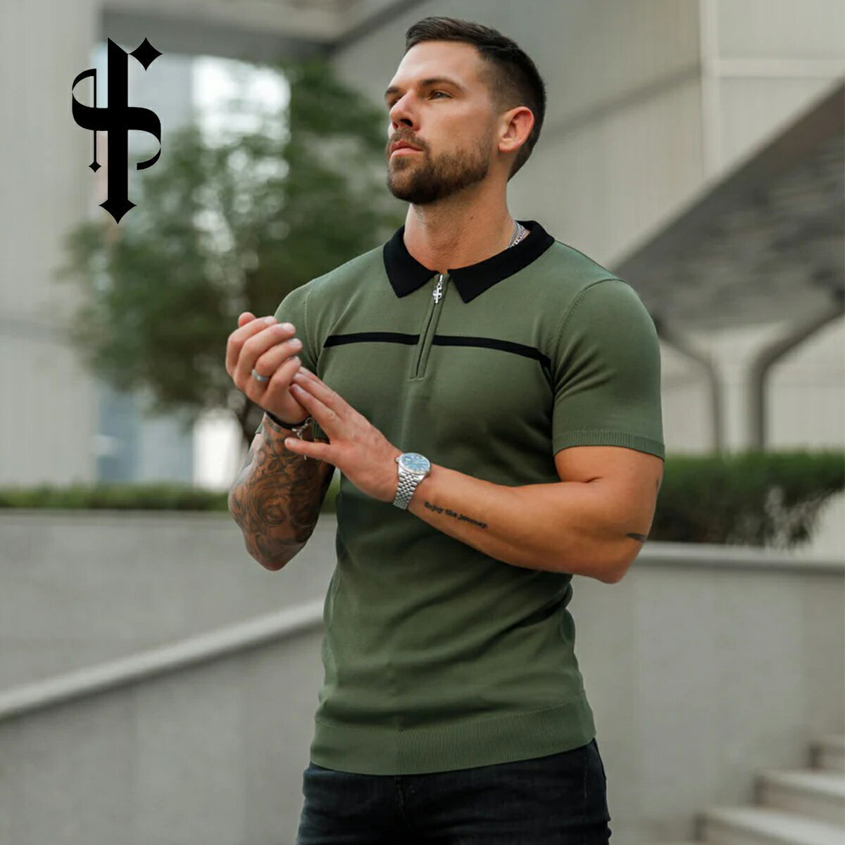 ファザー アンド サンズ FATHER SONS CLASSIC KHAKI / BLACK HORIZONTAL STRIPE ZIPPED POLO SHORT SLEEVE ポロシャツ ジップ 半袖 メンズ 筋トレ ジム ウエア スポーユ00582