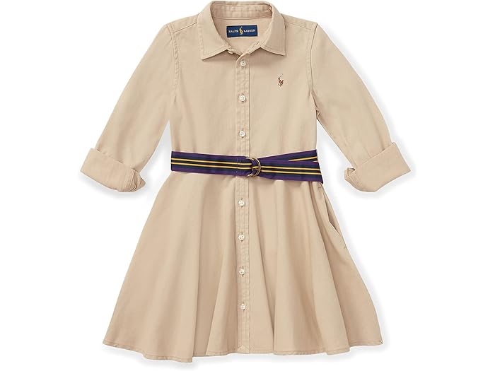 (取寄) ラルフローレン キッズ ガールズ ベルテッド コットン チノ シャツドレス (リトル キッズ) Polo Ralph Lauren Kids girls Belted Cotton Chino Shirtdress (Little Kids) Classic Khaki