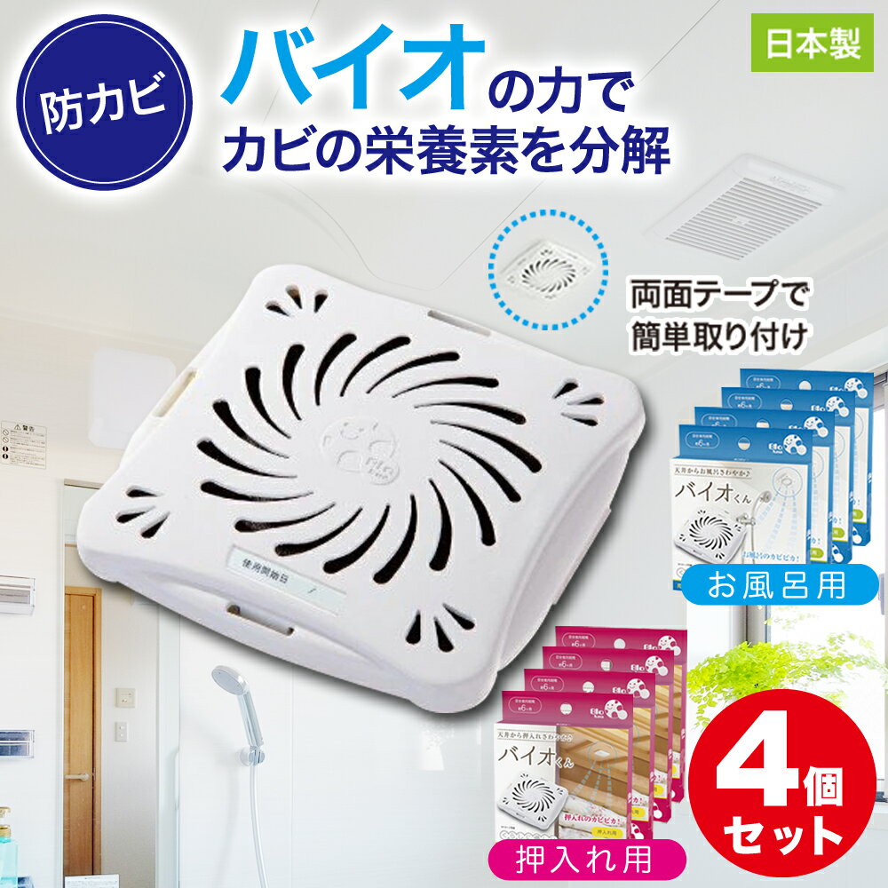 防カビ お風呂用 4個セット バイオ くん 押入れ用 クローゼット 掃除 浴室 バイオ君 おフロ カビ かび 抑制 防カビくん 6ヶ月 納豆菌 大掃除 カビ取り アレルギー アトピー 対策 臭い カビの繁殖 日本製 バス用 化学薬品不使用 テープ付 ポイント消化 clean