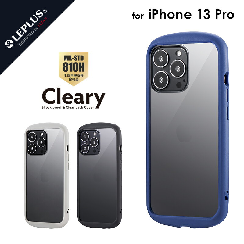 iPhone13Pro 対応 ケース カバー 背面タイプ 耐衝撃 ハイブリッドケース 「Cleary」 クリア 透明 写真 ステッカー カスタム ハニカム構造 シンプル コールドグレー LP-IP21PLCGY mst-33106