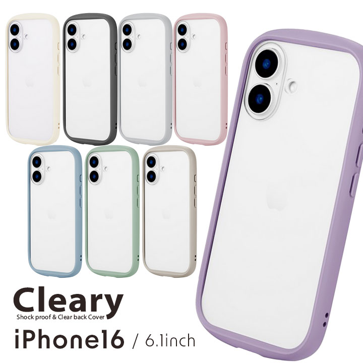 iPhone16 耐衝撃ハイブリッドケース Cleary ミルクホワイト ダークグレー ライトグレー ダスティピンク スモークブルー ミント ラベンダー ベージュ アイフォン16[LN-IM24PLC]
