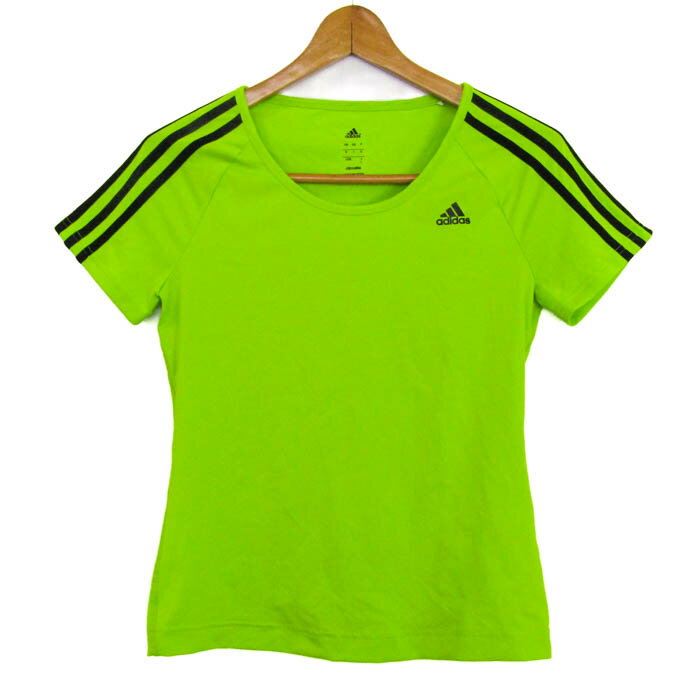 【全品39%OFFクーポン配布中】アディダス 半袖Tシャツ クライマライト ストレッチ スポーツウエア トップス レディース Lサイズ 黄緑×ブラック adidas 【中古】