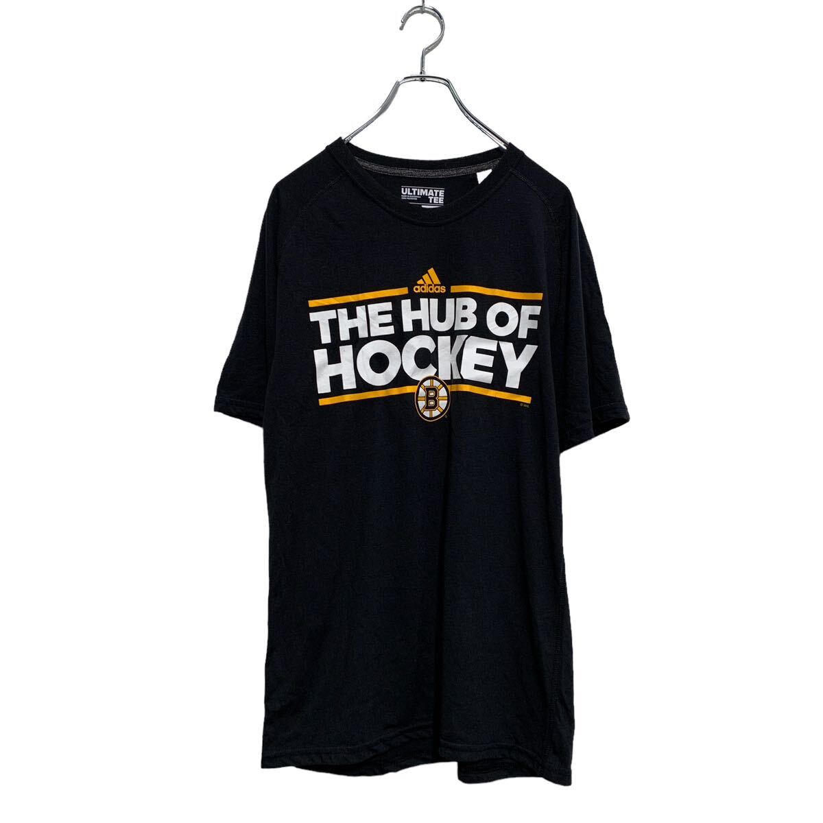 【中古】【古着】 adidas 半袖 プリントTシャツ L ブラック イエロー アディダス クルーネック クライマライト ホッケー 古着卸 アメリカ仕入 a604-5303