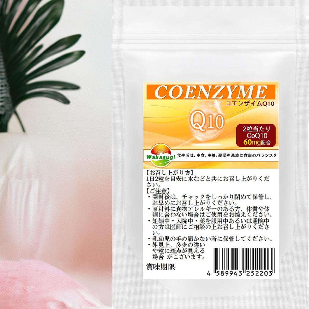 コエンザイムQ10 サプリ60粒 2袋セット計120粒 約2か月分2粒あたりCoQ10 60mg配合燃焼系サプリのカルニチンやαリポ酸と相性抜群 補酵素 燃焼系ダイエットのベースアップ エイジングケア 若杉サプリ