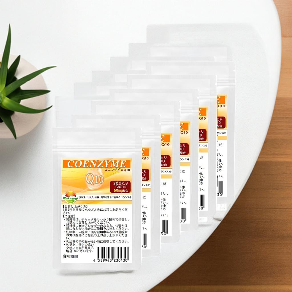 コエンザイムQ10 サプリ60粒 6袋セット 計360粒 約6ヵ月分目安 1粒あたりCoQ10 30mg配合 配合燃焼系サプリのカルニチンやαリポ酸と相性抜群 補酵素 燃焼系 ダイエットのベースアップ エイジングケア 若杉サプリ
