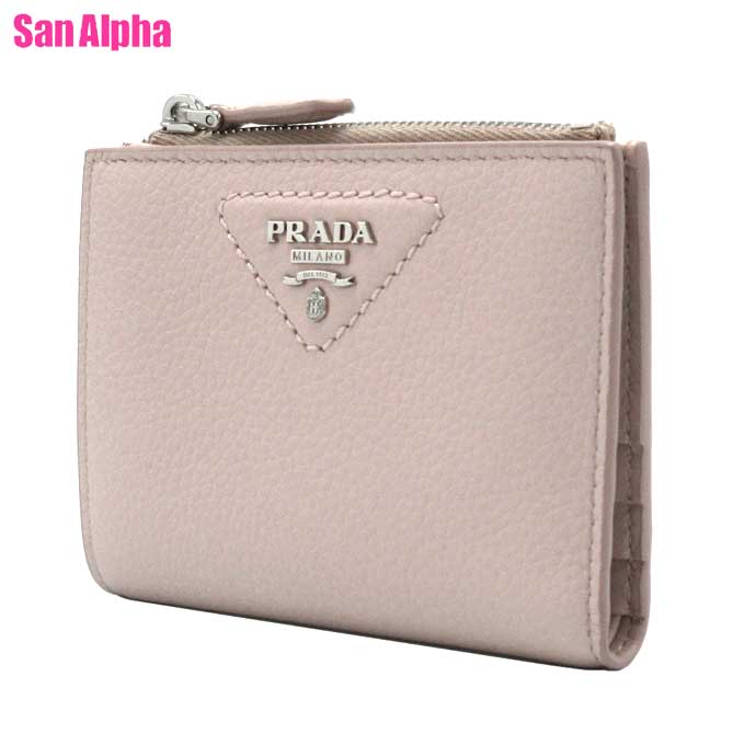 【1000円OFF 11/16 23:59迄】プラダ 財布 二つ折り財布 (小銭入れ有り) PRADA PORTAF.PICCOLO LAMPO レザー トライアングル キルティング メタルロゴ ミニ ウォレット 1ML050 VIT.DAINO / NINFEA (ピンクベージュ系) アウトレット レディース 送料無料