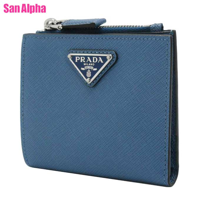 【1000円OFF 11/16 23:59迄】プラダ 財布 二つ折り財布 (小銭入れあり) PRADA PORTAF.PICCOLO LAMPO サフィアーノ レザー トライアングル ロゴプレート ミニ ウォレット 2ML049 SAFFIANO TRIANG / AVIO (スモークブルー系) アウトレット メンズ 送料無料