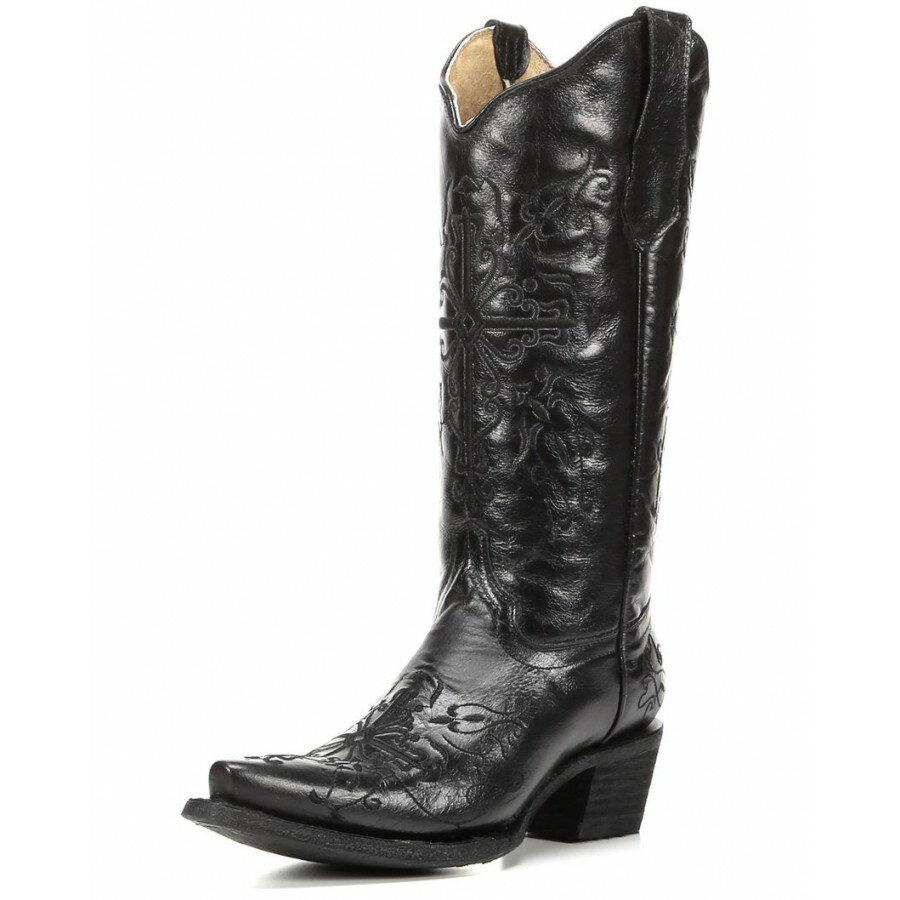 (#18)L5060 コラール Corral 12"Circle G レディース ブラック クロス刺繍 ウエスタンブーツ【送料無料 通販】