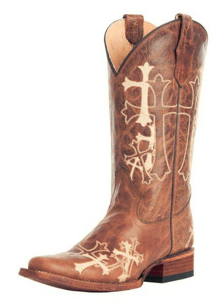 (#18)L5042 コラール Corral 12"Circle G レディース ブラウン クロス刺繍 ウエスタンブーツ【送料無料 通販】