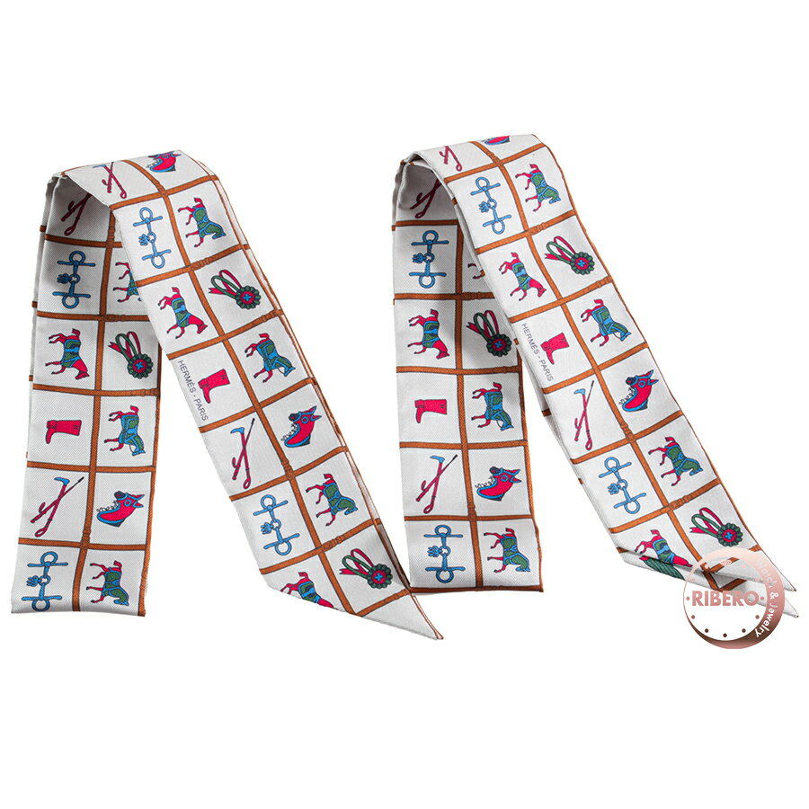 エルメス トゥイリー 馬着 クリーム×シロ×ローズ シルクHERMES TWILLY COUVERTURES ET TENUES DE JOUR CREME/BRUN/ROSE Silk