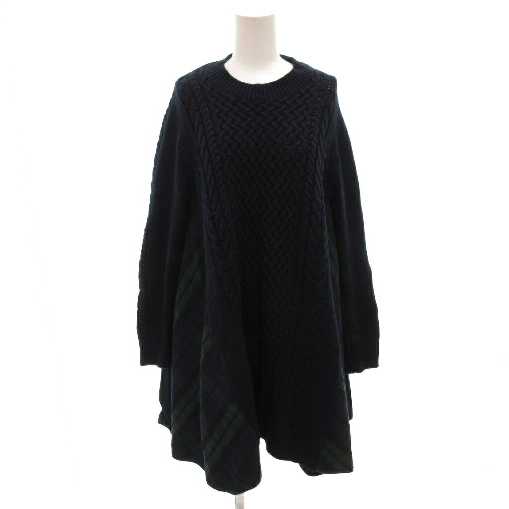 【中古】covergirl boutique ニットワンピース 異素材ドッキング チェック 長袖 ロング 紺 ネイビー /FF レディース 【ベクトル 古着】 250905
