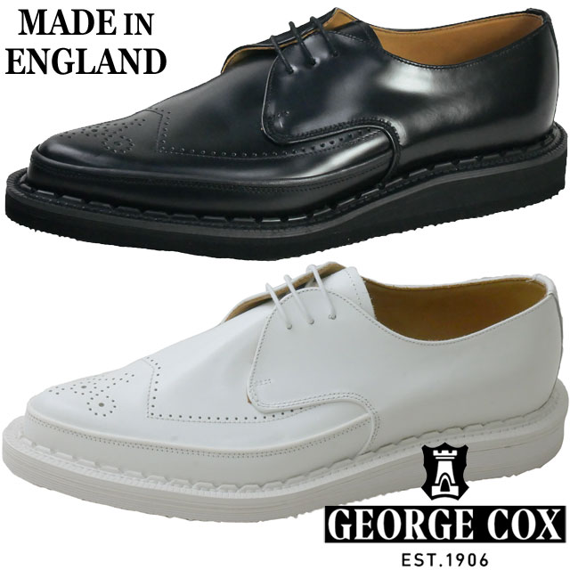ジョージコックス GEORGE COX メンズ 厚底 レザーシューズ ストラマー ギブソン カジュアルシューズ 10635 040 ブラック 黒 031 ホワイト 白 本革 靴 メイドインイングランド イギリス製 送料無料 最強翌日配送 evid