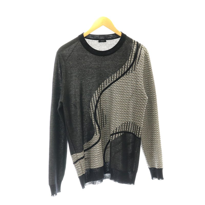 【中古】ジョセフ JOSEPH 23SS CRAWLING JAQUARD KNIT ニット セーター 長袖 48 ブラック 白 ベージュ /ES ■OS メンズ 【ベクトル 古着】 250411