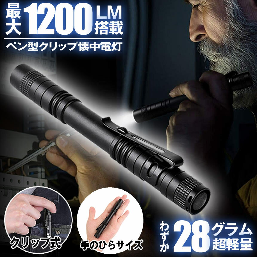 懐中電灯 ミニ ペン型ライト ペンライト LED懐中電灯 クリップ付き クリップ 小型 軽量 コンパクト 防災 地震 緊急 災害 便利 CREE LED 100000時間寿命 1200ルーメン 明るい 電池式 防水 ペンクリップ 送料無料 MINILIGHT