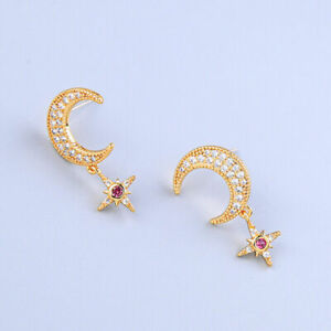 【送料無料】ジュエリー・アクセサリー ゴールドメッキゴールドジルコニウムキュービックムーンイヤリングorecchini a perno placcato oro verde zirconio cubica luna stella piccolo sera p2