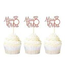 Ercadio 24 パック Miss to Mrs カップケーキトッパー ローズゴールドグリッター結婚指輪カップケーキピック ブライダルシャワー 記念日 婚約パーティー ケーキデコレーション用品 Ercadio 24 Pack Miss to Mrs Cupcake Toppers Rose Gold Glitter We