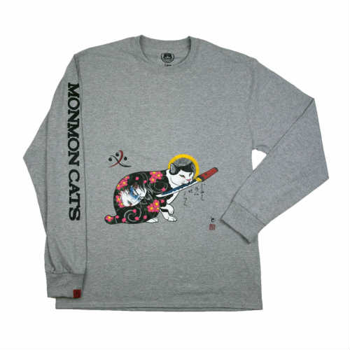 MONMON CATS Dagger Cat Long Sleeve Gray モンモンキャット ロングスリーブ 長袖 猫 刺青 イレズミ tattoo タトゥー ねこ ハチワレ はちわれ ネコ アメリカ カリフォルニア ロンT ロンt