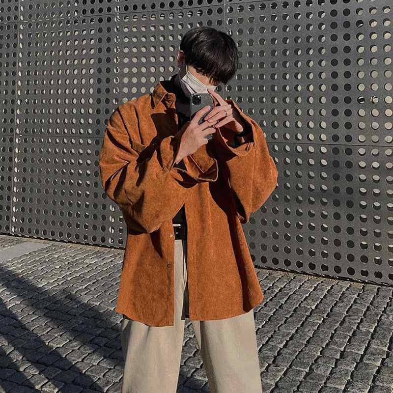 シャツ メンズ 男性用 長袖 秋冬 韓国風 ゆったり tendances カジュアル レトロ コーデュロイ シャツ ジャケット アウター