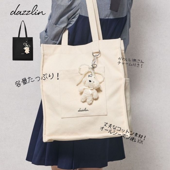 dazzlin 熊チャーム キャンバス デニム 縦型トートバッグ 推し活バッグ スタイルコード バッグ トートバッグ ブラック【送料無料】