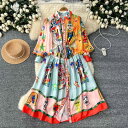 ・カテゴリ: ワンピース・スタイル: エレガント、フェミニン・主な素材: ポリエステル混紡 (30%〜50%含有)・柄: プリント・前立て: シングルボタン・着丈: ミドル丈・スカートシルエット: プリーツ・ネックライン: ポロ襟・袖タイプ: シャツスリーブ・袖丈: 長袖・ウエストライン: ミドルウエスト・カラー: 総柄・サイズ展開: M、L、XL、XXL
