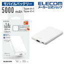 エレコム モバイルバッテリー 薄型コンパクト 5000mAh / 2.4A / Cx1+Ax1 リチウムイオン電池 薄い おまかせ充電対応 12W対応 USB-A出力1ポート Type-C 入力 5000mAh 国内メーカー ホワイト ELECOM DE-C37-5000WH