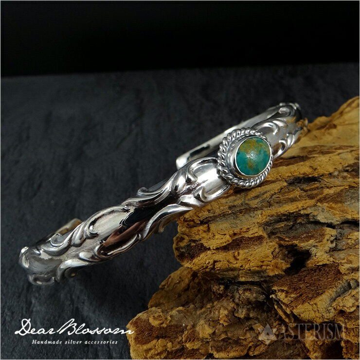 Dear Blossom(ディアブロッサム)「甲丸 高肉唐草+ターコイズバングル」【手彫り シルバー 950 インディアンジュエリー アラベスク ブレス バングル メンズ レディース ブランド プレゼント 人気 高品質 通販】B-122