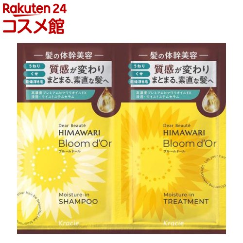 お店TOP>ディアボーテ ブルームドール シャンプー&トリートメント トライアルセット (1セット)商品区分:化粧品【ディアボーテ ブルームドール シャンプー&トリートメント トライアルセットの商品詳細】●髪のゆがみに加え、乾燥浮き毛を整え、使うたび、内部密度が高まる●高濃度プレミアムヒマワリオイルEX配合●浸透・モイストステムセラム配合。髪内部に浸透し、うるおいで満たす●髪ゆがみケアテクノロジー●ノンシリコンシャンプー●アミノ酸系洗浄成分配合(シャンプー)●全品サルフェートフリー●輝く瞬間を包みこむウォータリーブーケの香り【販売名】HM Pシャンプー、HM Pトリートメント【使用方法】・SP:髪をぬらし、適量を髪全体につけ、充分に泡立てて洗い、その後よくすすいでください。・TR:シャンプー後、適量を髪になじませてから、すすいでください。【セット詳細】シャンプー10mL+トリートメント10g【成分】・SP:水、ラウラミドプロピルベタイン、ラウロイルメチルアラニンNa、イソペンチルジオール、ココイルグルタミン酸TEA、ヤシ油脂肪酸PEG-7グリセリル、ジラウラミドグルタミドリシンNa、ヒマワリ種子油脂肪酸フィトステリル、グリセリン、ヒマワリ種子油、ヒマワリ種子エキス、ヒマワリ花エキス、ポリクオタニウム-7、ポリクオタニウム-22、クエン酸、ラウリン酸PEG-2、ポリクオタニウム-10、セテアレス-60ミリスチルグリコール、グアーヒドロキシプロピルトリモニウムクロリド、ピロ亜硫酸Na、塩化Na、BG、EDTA-2Na、安息香酸Na、香料・TR:水、セテアリルアルコール、ジメチコン、グリセリン、ジラウラミドグルタミドリシンNa、ヒマワリ種子油脂肪酸フィトステリル、ポリクオタニウム-107、ヒマワリ種子油、ヒマワリ種子エキス、ヒマワリ花エキス、PPG-2アルギニン、ミツロウ、乳酸、パラフィン、ビスジグリセリルポリアシルアジペート-2、ベヘナミドプロピルジメチルアミン、DPG、グリコシルトレハロース、水添ポリイソブテン、加水分解水添デンプン、イソプロパノール、(PEG-40/PPG-8メチルアミノプロピル/ヒドロキシプロピルジメチコン)コポリマー、ネオペンタン酸イソデシル、ラウレス-4、ラウレス-23、ステアリン酸PEG-55、クエン酸、BG、ステアルトリモニウムクロリド、安息香酸Na、メチルパラベン、香料、カラメル【注意事項】・頭皮に合わない時、傷・湿しん等、異常のある時は使用しないでください。・ご使用中、赤み・かゆみ・刺激等の異常が現れた時は使用を中止し、皮フ科専門医等へのご相談をおすすめします。そのまま使用を続けると症状が悪化することがあります。・目に入らないよう注意し、入った時はすぐ洗い流してください。目に異物感が残る場合は、眼科医にご相談ください。・乳幼児の手の届かないところに置いてください。【原産国】日本【ブランド】ディアボーテ(Dear Beaute)【発売元、製造元、輸入元又は販売元】クラシエリニューアルに伴い、パッケージ・内容等予告なく変更する場合がございます。予めご了承ください。クラシエ108-8080 東京都港区海岸3-20-200120-540-712広告文責:楽天グループ株式会社電話:050-5306-1825