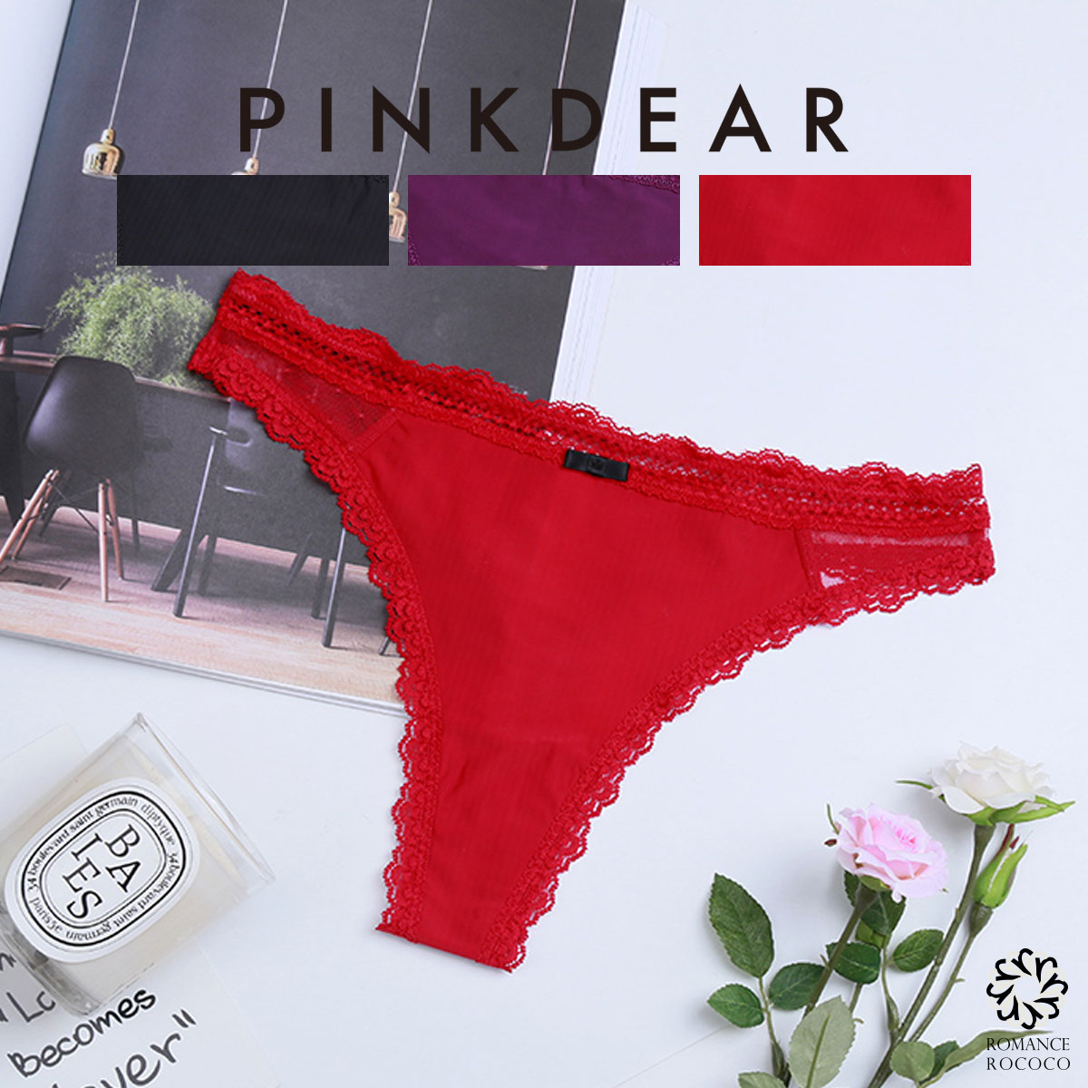 メール便可/ピンクディア(PINK DEAR) ストライプ レーシー Tバック ショーツ ソング パンツ セクシー ソング タンガ 透け感
