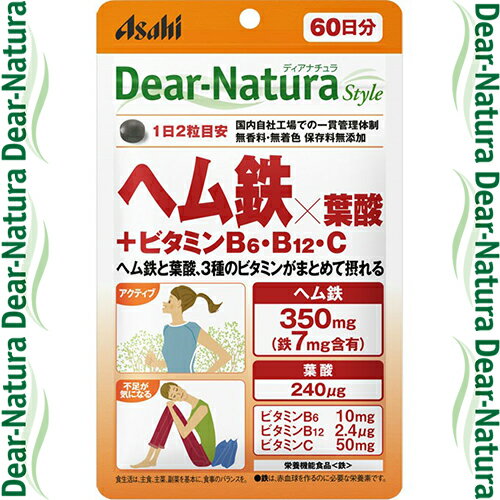 ディアナチュラスタイル ヘム鉄×葉酸+ビタミンB6・ビタミンB12・ビタミンC 120粒 *アサヒグループ食品 Dear natura サプリメント 葉酸 鉄 貧血 マタニティ ママサプリ/ヘム鉄と葉酸・3種のビタミンがまとめて摂れる/鉄は赤血球を作るのに必要な栄養素です