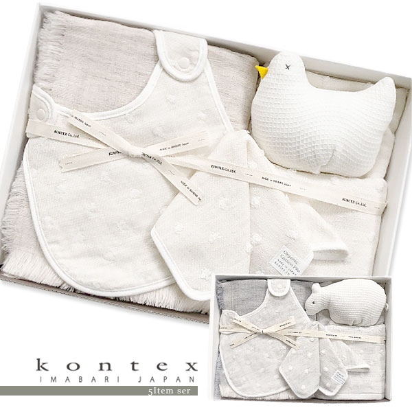 【DEAR&NATURAL DOTS ベビー ギフトセット 】 ブランケット・スタイ・ハンカチ・フェイスタオル・にぎにぎ おくるみにも、ショールにも。ママとベビーに贈るお祝いスペシャルセット。 シンプルなKONTEX専用のホワイトボックス入りなので、 お子様の出産祝いや御祝、お誕生日ギフトとしてオススメです。 ■品名: DEAR&NATURAL DOTS ベビー ギフトセット ■セット内容: ブランケット×1枚、スタイ×1枚、ハンカチ×1枚、 フェイスタオル×1枚、ニギニギ×1点、 ギフトボックス、メッセージカードorのし短冊 ■ブランケット: サイズ)W95×H162cm 素材)綿99%・リネン(麻)1% ■スタイ: スナップボタンタイプ 素材)綿100% ■ハンカチ: W20×H20cm 素材)綿100% ■フェイスタオル: W34×H83cm 素材)綿100% ■ニギニギ: 鈴入り 素材)綿100% ■カラー: 全2色(アイボリー、グレー) ■メッセージカードについて: メッセージカードまたはのし短冊がセットになっています。 お買い物かごに入れる際にプルダウンメニューよりご選択ください。 ≫ SHOP TOPページへ ≫ 出産祝い・Babyグッズ商品一覧へ
