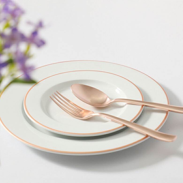 ビタクラフト ディアのコンセプトカラー「ローズゴールド」にしつらえたデザートフォークです。素材となっているのはラッキーウッドブランドの中でも、シンプルで長く愛されるデイトンシリーズ。ラッキーウッドの高級ステンレスは、日本のJIS規格の認定工場にて生産・保証された一級品が使用。小ぶりでお洒落なDearシリーズと相性が良い太く直線的なフォルムながらも、角は丸みを帯びやさしい印象を与えてくれます。単に幅を持たせただけでなく、さまざまな用途に応じた十分な機能と実用性を兼ね備えています。安全安心でリサイクルが可能です。輝きは美しさだけでなく耐久性と清潔のために。○お手入れ方法・食器用洗剤をやわらかいスポンジ等につけてお湯で洗い、十分 にすすいだ後きれいな布で水気を良く拭き取ってください。・ナイフ類の洗浄・拭き作業は、ケガに注意しておこなってください。・クレンザーや、スチールウール、たわし等の硬いものは銀製品をキズつけますので使用しないでください。・使用後は早めに洗浄してください。※銀器を変色させる食材等の例:調味料類、卵類、肉、チーズ等のタンパク質、水道水のカルキ、原料が生ゴムの輪ゴム、原料が生ゴムと塩の食品用ラップ等。お手入れはキズをつけないことと、中性洗剤であらった後、乾いた布で拭き取ると大変長持ちします。○変色のお手入れ・少量の変色はきれいなやわらかい布で拭くことで、ほぼ落す事ができます。・しつこい変色や、艶を出したい場合は市販のシルバークリーナーをやわらかい布につけて優しく磨きます。研磨剤での過度なお手入れは、銀を摩耗させますのでご注意ください。模様の凹凸の中は綿棒等をご使用ください。○変色させない保管方法のポイント・空気を遮断 ⇒ 容器等で密封します。・湿気を遮断 ⇒ 銀器を入れた容器中に乾燥剤を入れます。・日光の当たらない場所で保管 ⇒ 日光は変色を促進します。・保管が長期になる場合 ⇒ 時々取り出してきれいな布でから拭きすることである程度変色を抑えられます。※なにより、日々ご使用いただくことが変色を防ぐ一番の方法です。サイズ:全長約19cm重量:約52g材質:18-8ステンレス(クローム18%・ニッケル8%)生産国:日本注意:食洗機使用不可関連キーワード デザートナイフ デザートスプーン デザートフォーク ケーキフォーク ティースプーン ナイフ フォーク セット カトラリーセット おしゃれ ローズ ピンク ゴールドこの商品を見ている人は、こちらも チェックされています ↓
