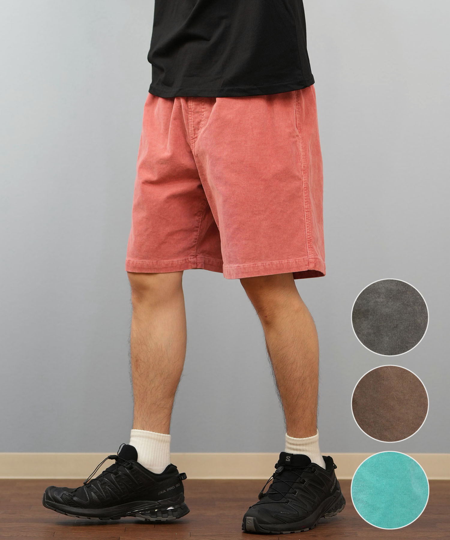【秋口まで着られるコーデュロイ素材ショーツ】●柔らかく程よい深みのある表情が大人っぽい。●太すぎず細すぎない、バランスの良いシルエットで普段使いに最適。●Tシャツやライトアウターまで幅広いアイテムと好相性。●季節の変わり目に重宝する一着。◆おすすめコーディネートシンプルなデザインなので様々なトップスに合わせやすいアイテム。シャツを羽織ればゆるすぎないオシャレサーフなスタイリングに。フェスやBBQなど夏のレジャーシーンにもおススメです。≪商品詳細≫■素材■綿100%■サイズ目安■【M】ウエスト:69cm ヒップ:123cm パンツ丈:46.5cm 股上:30.5cm 股下:19cm もも周り:72cm すそ周り:63cm【L】ウエスト:71cm ヒップ:125cm パンツ丈:49cm 股上:33cm 股下:19.5cm もも周り:72cm すそ周り:63cm■モデル着用サイズ■model:H177 着用サイズ:L