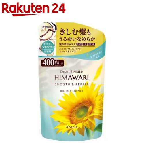 お店TOP>化粧品>ヘアケア>シャンプー>シャンプー全部>ディアボーテ オイルインシャンプー スムース&リペア 詰替用 (400ml)商品区分:化粧品【ディアボーテ オイルインシャンプー スムース&リペア 詰替用の商品詳細】●指通りなめらか処方採用。●プレミアムヒマワリオイルEXで髪内部にうるおいをあたえ、髪の外側のキューティクルのはがれをコート。●髪ゆがみケアテクノロジーでうねり・くせ・パサつきケア&湿気ケア&ひっぱりケアで髪の内部&外側を全方位でケア。●傷んだ部分をねらって集中補修する「ダメージセンサー機能」。●みずみずしく颯爽と軽やかに華やぐフレッシュフローラルの香り【販売名】HM SシャンプーA【使用方法】髪をぬらし、適量を髪全体につけ、充分に泡立てて洗い、その後よくすすいでください。【成分】水、ラウロイルサルコシンTEA、パーム核脂肪酸アミドプロピルベタイン、コカミドメチルMEA、ココイルグルタミン酸TEA、ココイルメチルタウリンNa、ヤシ油脂肪酸PEG-7グリセリル、ヒマワリ種子油、ヒマワリ種子エキス、ヒマワリ花エキス、ポリクオタニウム-7、ポリクオタニウム-64、クエン酸、セテアレス-60ミリスチルグリコール、グアーヒドロキシプロピルトリモニウムクロリド、ポリクオタニウム-10、ポリクオタニウム-49、エタノール、塩化Na、グリセリン、BG、EDTA-2Na、安息香酸Na、香料、カラメル【注意事項】・頭皮に合わない時、傷・湿しん等、異常のある時は使用しないでください。・ご使用中、赤み・かゆみ・刺激等の異常が現れた時は使用を中止し、皮フ科専門医等へのご相談をおすすめします。そのまま使用を続けると症状が悪化することがあります。・目に入らないよう注意し、入った時はすぐ洗い流してください。・乳幼児の手の届かないところに置いてください。【原産国】日本【ブランド】ディアボーテ(Dear Beaute)【発売元、製造元、輸入元又は販売元】クラシエリニューアルに伴い、パッケージ・内容等予告なく変更する場合がございます。予めご了承ください。クラシエ108-8080 東京都港区海岸3-20-200120-540-712広告文責:楽天グループ株式会社電話:050-5577-5043[シャンプー/ブランド:ディアボーテ(Dear Beaute)/]