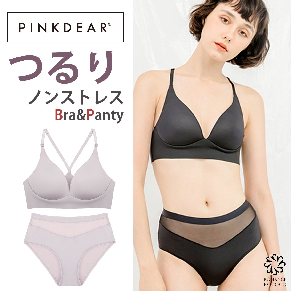 ピンクディア(PINK DEAR) つるりノンストレスブラセット ノンワイヤー ブラショーツセット ワイヤレス ノーワイヤー モテ 下着 レディース セット ブラジャー ショーツ スポーツ