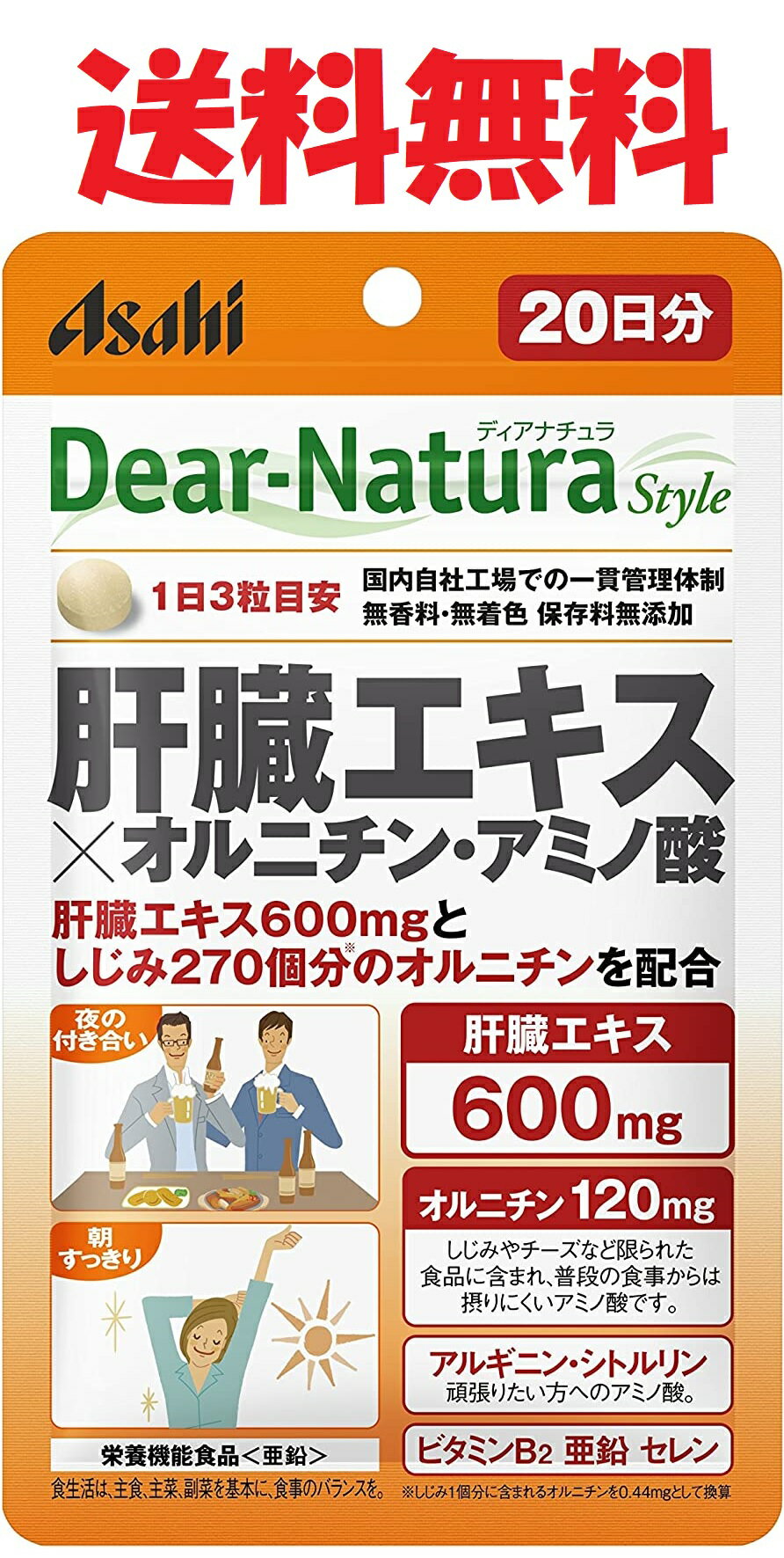 在庫あり ディアナチュラスタイル 肝臓エキス×オルニチン・アミノ酸 60粒 (20日分) 4946842638758★メール便送料無料 Dear−Natura Style アサヒグループ食品 パウチタイプ