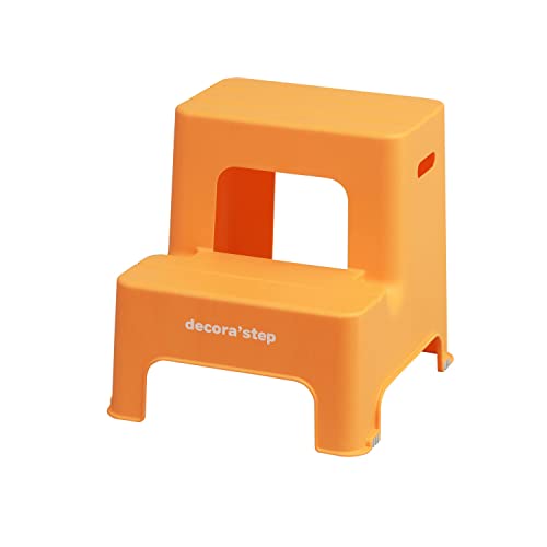 サンカ デコラステップ 踏み台 昇降ステップ台 オレンジ ショートL 高さ14cm 広い足のせ部分と滑り止め加工 インテリアになじむおしゃれでかわいい丸いフォルム 耐荷重100kg 軽量設計 日本製 子供 トイレ 玄関 洗面所 洗車台 足台 キッズ 室内 (幅59×奥行28×高さ14cm) DS-S