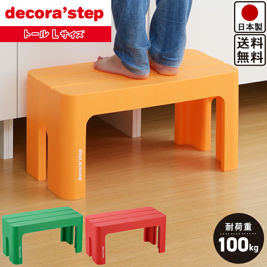 【送料無料】デコラステップ トール L サイズ 踏み台 / レッド オレンジ グリーン / 滑り止め ステップ台 スツール 踏み台 / キッチン 高所 屋内 屋外 玄関 / 幅59cm 奥行28cm 高さ30cm【日本製】