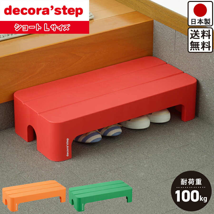 【送料無料】踏み台 高さ 14cm 耐荷重 100kg 滑り止め つき ステップ台 レッド オレンジ グリーン /高さ14cm 幅59cm 奥行28cm デコラステップ ショートL キッチン 玄関 の 段差解消 に【日本製】