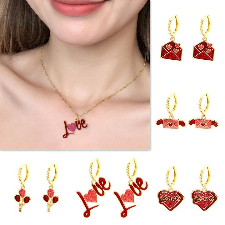 ネックレス & イヤリング レディース ファッションアクセサリー ペンダント 18Kメッキ ハートモチーフ LOVE メタルチェーン ヨーロッパ アメリカンスタイル 通勤 デート
