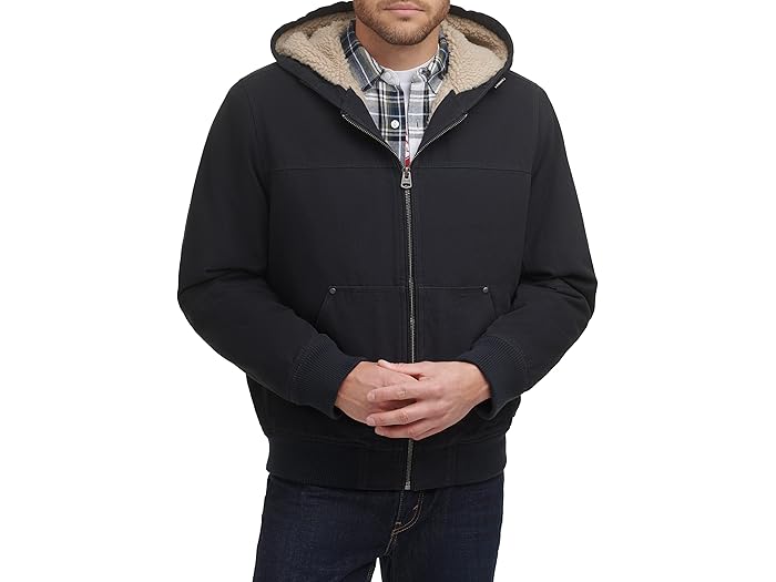 (取寄) リーバイス メンズ コットン キャンバス フーデット ユーティリティ ジャケット ウィズ シェルパ ライニング Levi's men Cotton Canvas Hooded Utility Jacket with Sherpa Lining Black